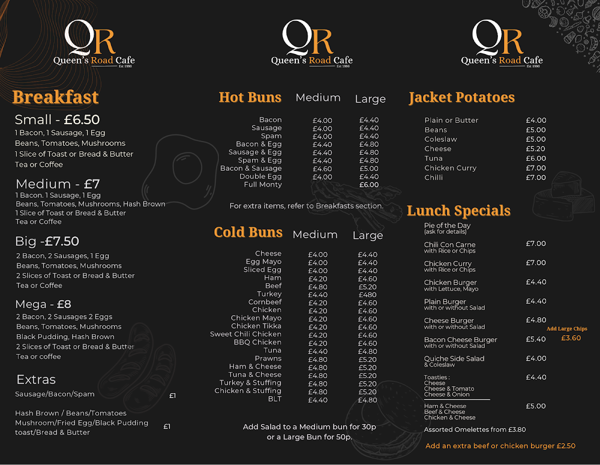 Queens road cafe Menu